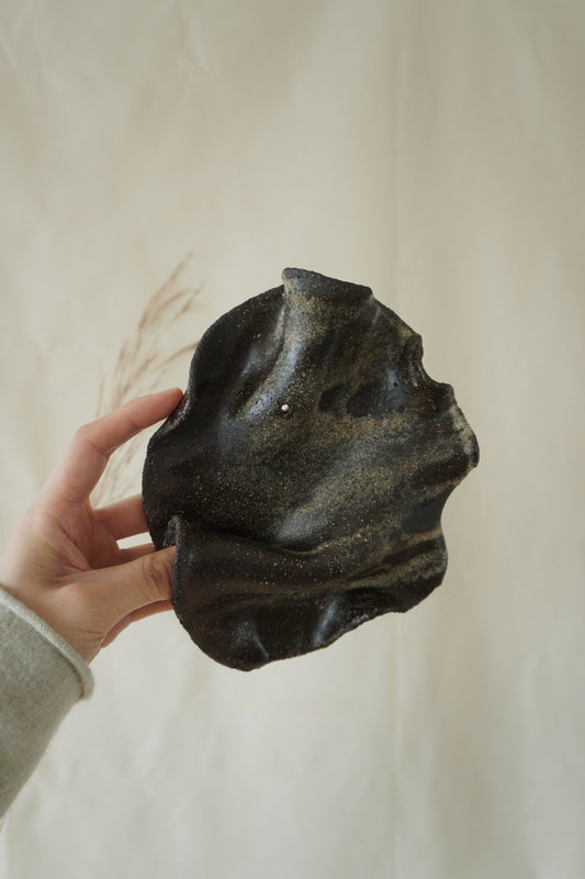 The 'Fluiform' ceramic pieces are crafted utilizing the distinctive 'clay-draping' technique, drawing inspiration from my background as a former fashion designer. Inspired by the art of fabric draping, techniques such as pinching, rolling, twisting, and folding are employed to imbue each piece with a unique and poetic fluidity. The process reflects a delicate balance between control and relinquishing control during the design phase, inviting viewers to perceive the various moods and explore the hidden negative spaces within each artwork.