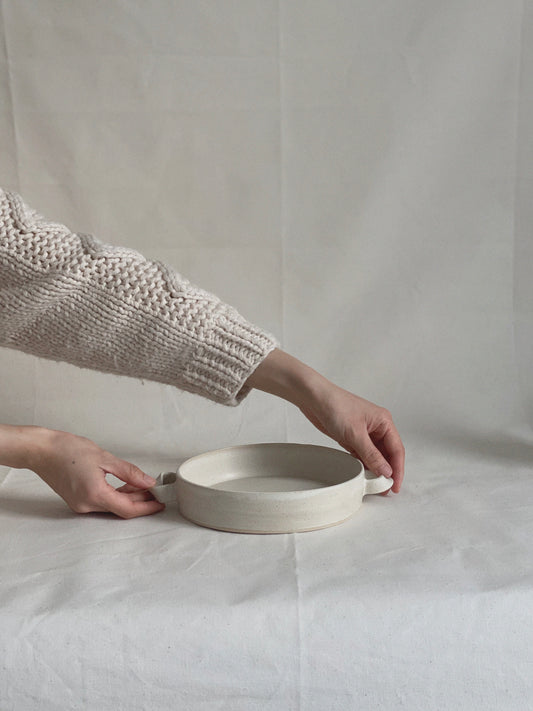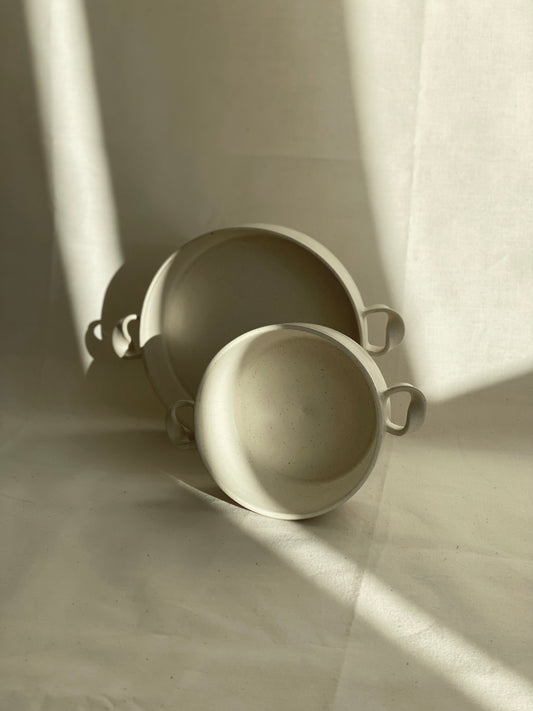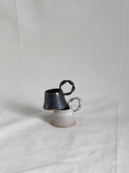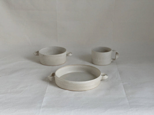 'Ribbon' is a ceramic collection with considered ‘twisted handle’ as its iconic design element. Using high-quality stoneware and silky matt almond white glaze with subtle speckle to bring the warm and peaceful tones. Functional, elegant, and still interesting, RIBBON series invites you to feel how design and artisanship can be blended well into our daily life.
